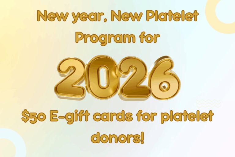 Starting January 1st, 2026, platelet donors will receive a $50 e-gift card following their donation. The IRS raised the limit for rewards from $600 to $2000 for 2026. With this change, donors should not reach the limit. Therefore will not…