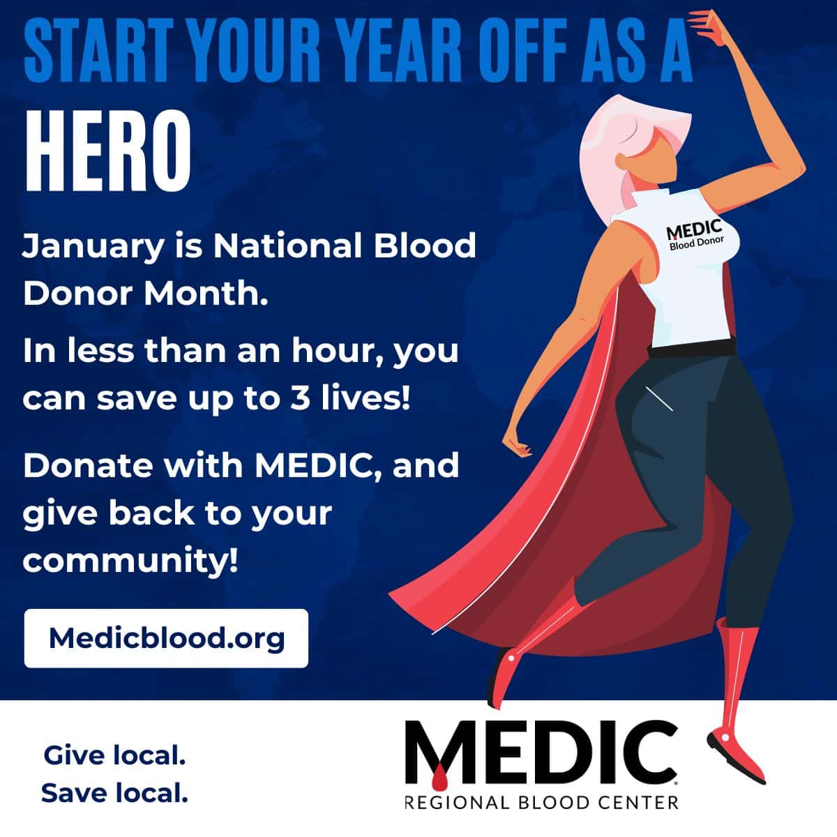 MEDIC serves 25 hospitals in 23 counties. Give local. Save local.