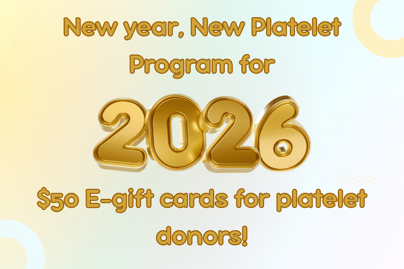 Starting January 1st, 2026, platelet donors will receive a $50 e-gift card following their donation. The IRS raised the limit for rewards from $600 to $2000 for 2026. With this change, donors should not reach the limit. Therefore will not need to have a 1099 issued. Below are the new program guidelines that will go…