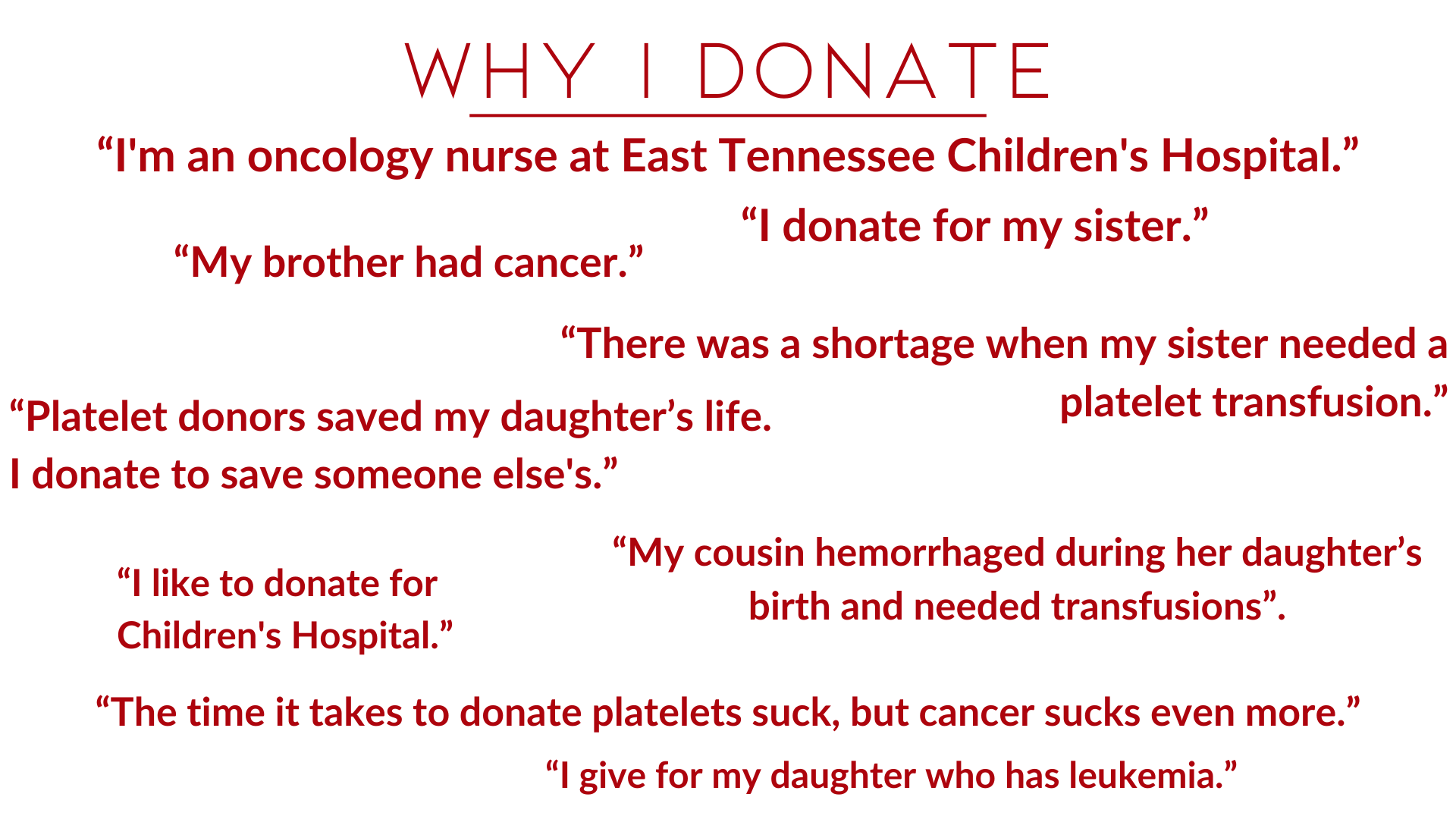 Hi! My name is Krissy, and I work in Hospital Services at MEDIC Regional Blood Center. It is the only department at MEDIC that is open 24/7, so we can serve our area hospitals day or night. One of the most significant issues we face is not having enough platelets on hand and in stock for our hospitals to obtain for the people who desperately need them. These people may be cancer patients, those receiving organ or bone marrow transplants, victims of traumatic injuries, and people undergoing open heart surgeries. It is very disheartening and alarming for us in hospital services as well as the staff from our hospitals when they order platelets, and we have to tell them we don’t have any or we have to purchase them from another blood bank, and they won’t arrive for hours. Often, doctors have to cancel scheduled surgeries when we are low or out of platelets. Imagine how that impacts the patient who has been planning for their surgery and now will have to reschedule. Platelets control the bleeding in our bodies. So, they are essential to surviving surgeries. Please consider being a platelet donor. Your precious platelets are desperately needed.
