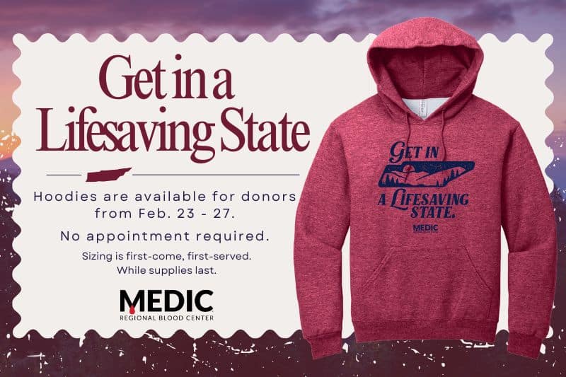 Roll up your sleeve to help save lives! MEDIC is partnering with WATE 6 On Your Side, Food City, and GSM Rentals for Roll Up Your Sleeve Week. From January 19th – 23rd, donors will receive a special edition sweatshirt, an entry into a $500 Food City gift card raffle, and an entry into a drawing…